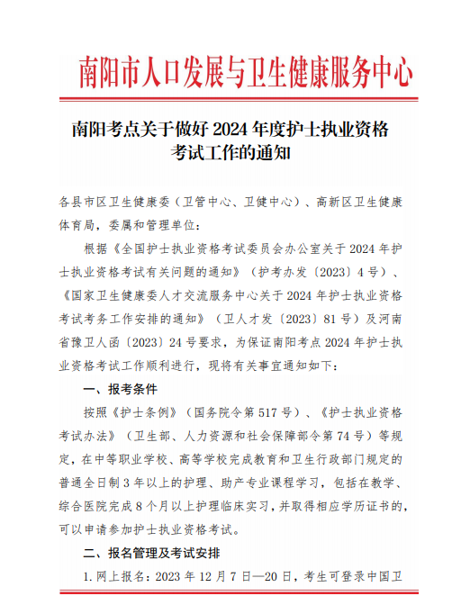 南陽考點(diǎn)關(guān)于做好2024年度護(hù)士執(zhí)業(yè)資格考試工作的通知