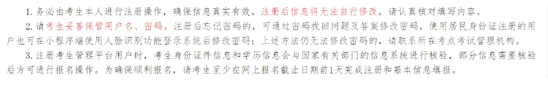 特別提醒(新注冊考生平臺需進(jìn)行信息核驗(yàn),核驗(yàn)需要一定時間,請考生盡早注冊,若密碼遺忘,請通過密保問題找回或登錄小程序端人臉識別找回)