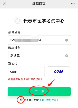 5.特別提醒:非長春考點考生請不要在此繳費。