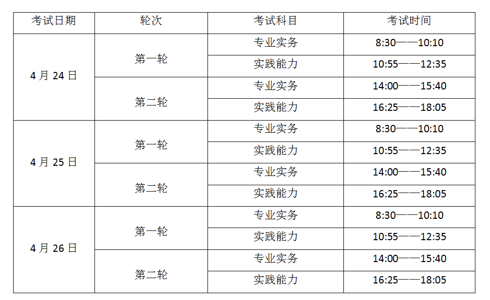 2021年護士執(zhí)業(yè)資格考試依然實行人機對話考試,定于2021年4月24日 ---26日舉行,每半天為一個輪次,分六輪次依次進行,考生將隨機分配至其中一個輪次,參加專業(yè)實務和實踐能力兩個科目的考試。具體考試時間安排如下: