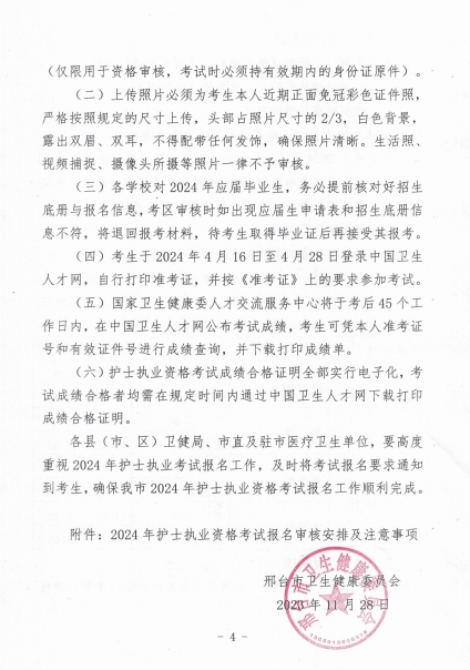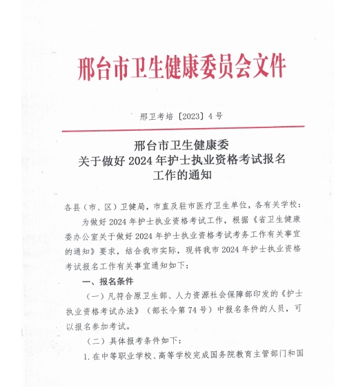 邢臺市2024年護士執(zhí)業(yè)資格考試報名工作的通知