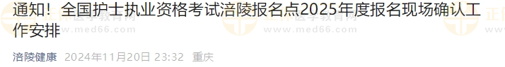 重慶涪陵區(qū)2025年護(hù)士執(zhí)業(yè)資格考試報(bào)名現(xiàn)場(chǎng)確認(rèn)工作安排公布啦!醫(yī)學(xué)教育網(wǎng)整理具體內(nèi)容如下: