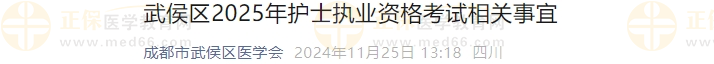 成都武侯區(qū)2025年護(hù)士執(zhí)業(yè)資格考試相關(guān)事宜公布啦!醫(yī)學(xué)教育網(wǎng)整理具體內(nèi)容如下: