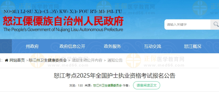 怒江考點(diǎn)2025年全國護(hù)士執(zhí)業(yè)資格考試報(bào)名公告