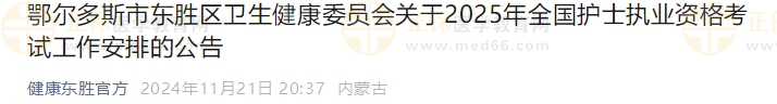 鄂爾多斯東勝區(qū)于2025年護士執(zhí)業(yè)資格考試工作安排的公告