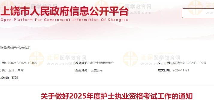 上饒市關(guān)于做好2025年護(hù)士執(zhí)業(yè)資格考試工作的通知