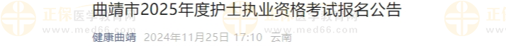 曲靖市2025年度護(hù)士執(zhí)業(yè)資格考試報(bào)名公告公布啦!醫(yī)學(xué)教育網(wǎng)整理具體內(nèi)容如下: