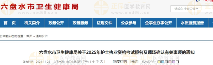 六盤水市2025年護(hù)士執(zhí)業(yè)資格考試報名及現(xiàn)場確認(rèn)有關(guān)事項的通知