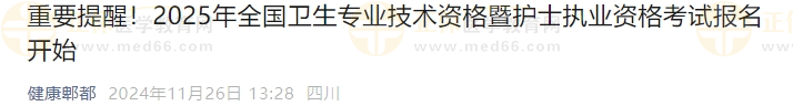 成都市郫都區(qū)2025年全國衛(wèi)生專業(yè)技術(shù)資格暨護士執(zhí)業(yè)資格考試報名通知公布啦!醫(yī)學(xué)教育網(wǎng)整理具體內(nèi)容如下: