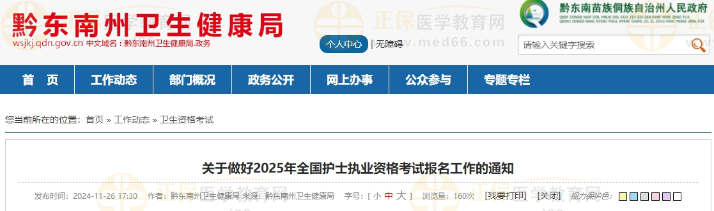 黔東南關(guān)于做好2025年全國護(hù)士執(zhí)業(yè)資格考試報(bào)名工作的通知