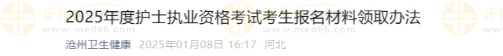 滄州2025年度護(hù)士執(zhí)業(yè)資格考試考生報(bào)名材料領(lǐng)取辦法公布啦!醫(yī)學(xué)教育網(wǎng)整理具體內(nèi)容如下:
