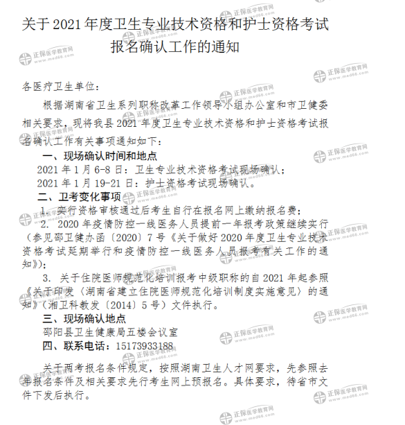 邵陽縣2021年護(hù)士資格考試報(bào)名確認(rèn)工作通知