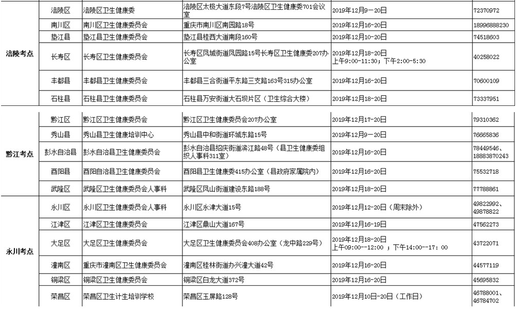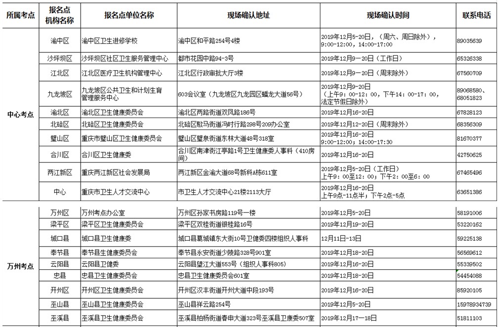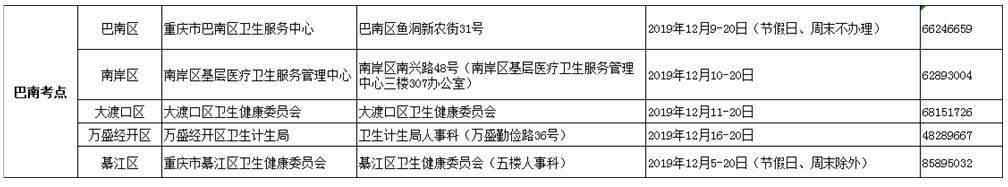 2020年護士資格考試重慶考區(qū)各考點現(xiàn)場確認時間