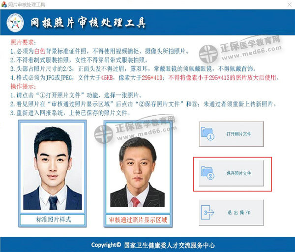 如選擇照片系統(tǒng)判定符合要求,系統(tǒng)會(huì)在審核通過照片區(qū)域顯示照片,點(diǎn)擊“保存照片文件”將審核通過的照片保存在本地電腦上即可。如下圖所示: