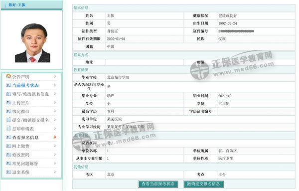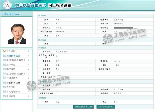 【查看報(bào)名信息】功能用于查看考生填寫的報(bào)名信息,可在此頁(yè)面檢查信息是否正確。見下圖: