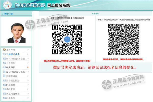 報(bào)名信息和照片保存后,考生進(jìn)入【綁定微信】功能,考生按界面顯示的步驟進(jìn)行微信綁定,見下圖: