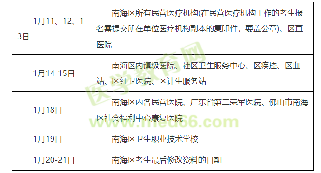 4.南海區(qū)報名點:受理工作單位或者檔案所在地為南海區(qū)的考生報名,現(xiàn)場確認時間:1月11日—21日,地址:佛山市南海區(qū)佛平二路82號佛山市南海區(qū)衛(wèi)生健康局三樓南海區(qū)護理學(xué)會,聯(lián)系電話:86238362;超三人報考的單位請單位負責(zé)考務(wù)的同事統(tǒng)一現(xiàn)場確認,南海區(qū)現(xiàn)場確認時間安排如下: