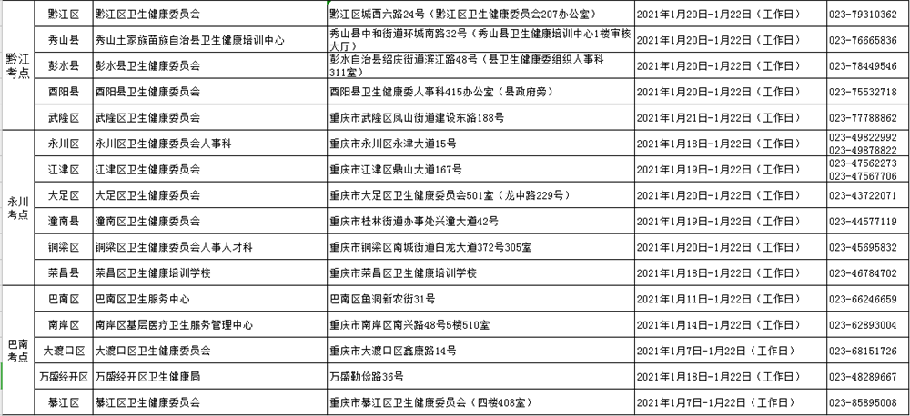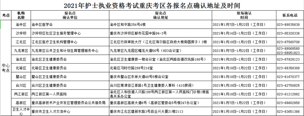 2021護(hù)士資格考試報(bào)名重慶考區(qū)各考點(diǎn)現(xiàn)場(chǎng)審核點(diǎn)聯(lián)系電話