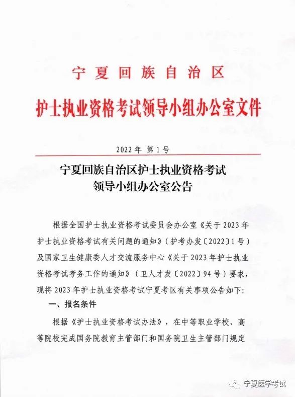 2023年寧夏回族自治區(qū)護(hù)士執(zhí)業(yè)資格考試報(bào)名時(shí)間的公告