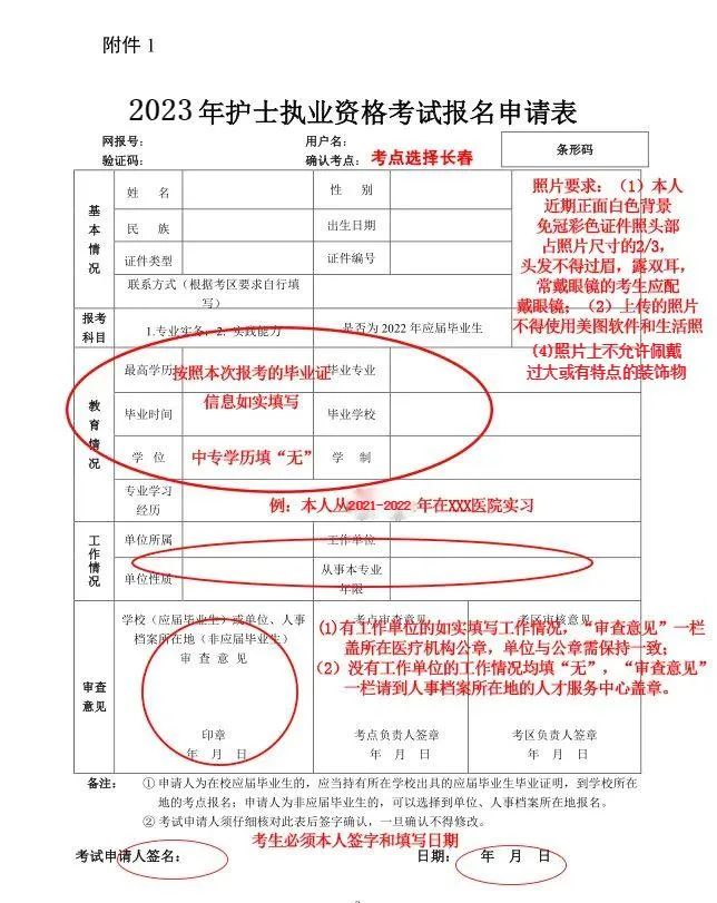 (1)經(jīng)所在單位或檔案存放單位審核并加蓋公章的《2023年度護士執(zhí)業(yè)資格考試報名申請表》2張,并將本人聯(lián)系電話寫在申請表上(見圖例);
