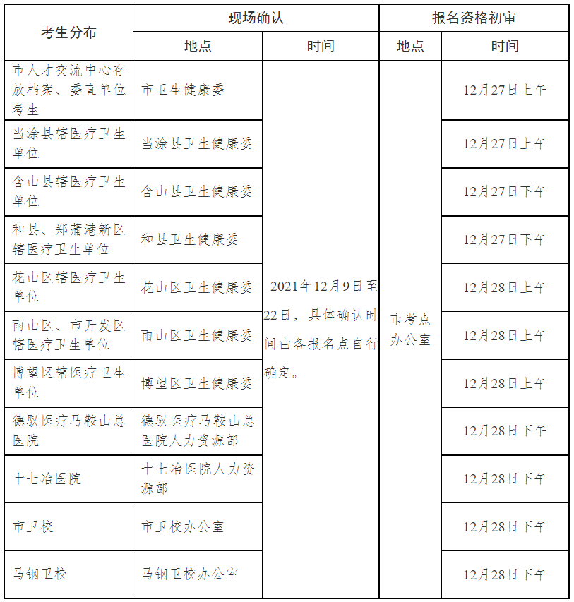 2022年護(hù)士執(zhí)業(yè)資格考試馬鞍山考點(diǎn)現(xiàn)場(chǎng)確認(rèn)及資格初審工作時(shí)間安排表