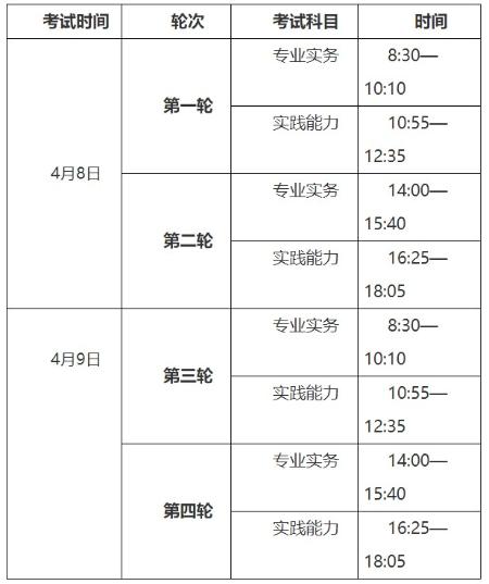 (二)考試時(shí)間:2023年4月8、9日兩天,每半天為一個(gè)輪次,共分4輪次進(jìn)行??忌鷮㈦S機(jī)分配至其中一個(gè)輪次參加考試。具體安排如下: