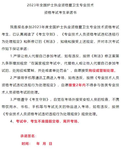 附件 1、2023年護士職業(yè)資格考試考生承諾書