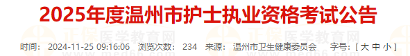 2025年度浙江溫州考點(diǎn)護(hù)士執(zhí)業(yè)資格考試公告