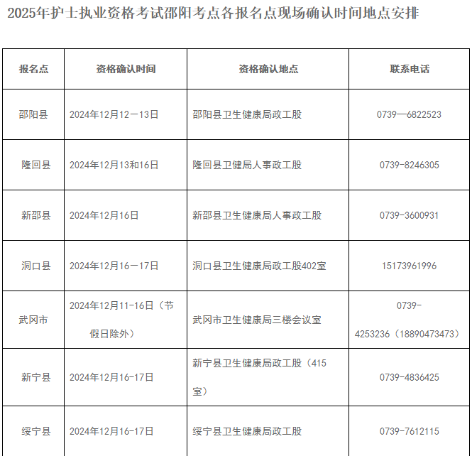 附件:?2025年護士執(zhí)業(yè)資格考試邵陽考點各報名點現(xiàn)場確認時間地點安排?