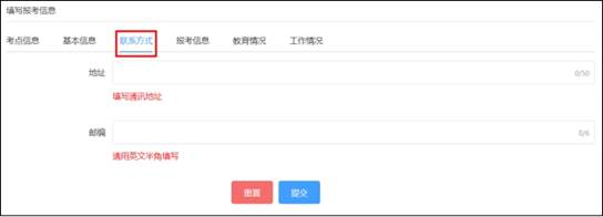 4.按順序填寫報考信息,每頁填寫完畢后點擊當(dāng)頁的“提交”按鈕進入下一頁填寫,其中標(biāo)“*”的為必填項。
