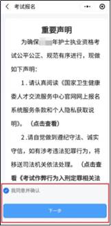3.認(rèn)真閱讀報考須知《重要聲明》和《考生誠信考試承諾書》,確保充分知曉考試相關(guān)規(guī)定和要求,勾選“同意”后點擊下一步,進入報名信息填寫頁面。