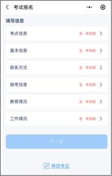 如信息填寫后發(fā)現(xiàn)省份選擇有誤,請在“未提交報名信息”狀態(tài)下,使用【修改考區(qū)】功能進行修改。