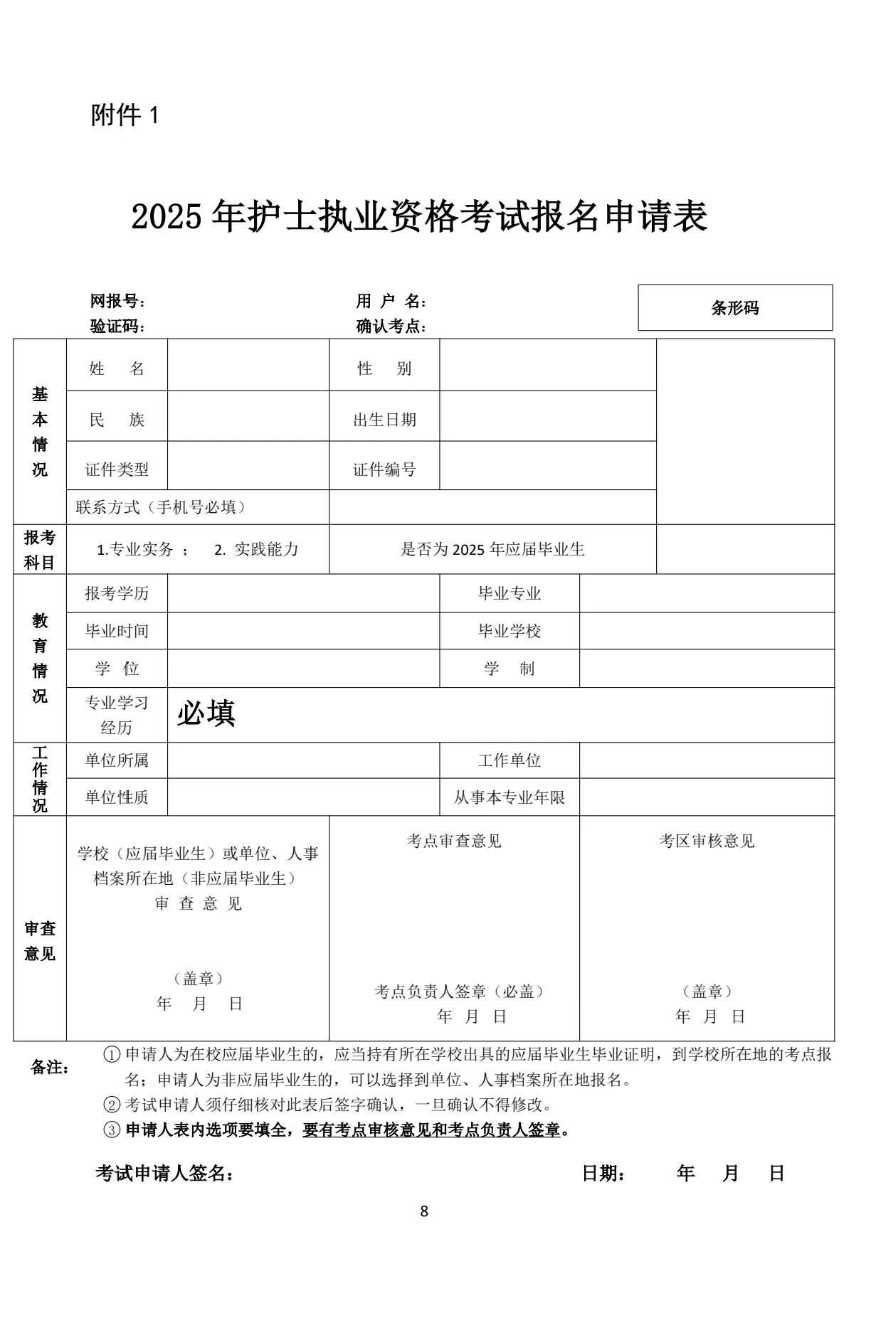 1.2025年護(hù)士執(zhí)業(yè)資格考試報(bào)名申請(qǐng)表