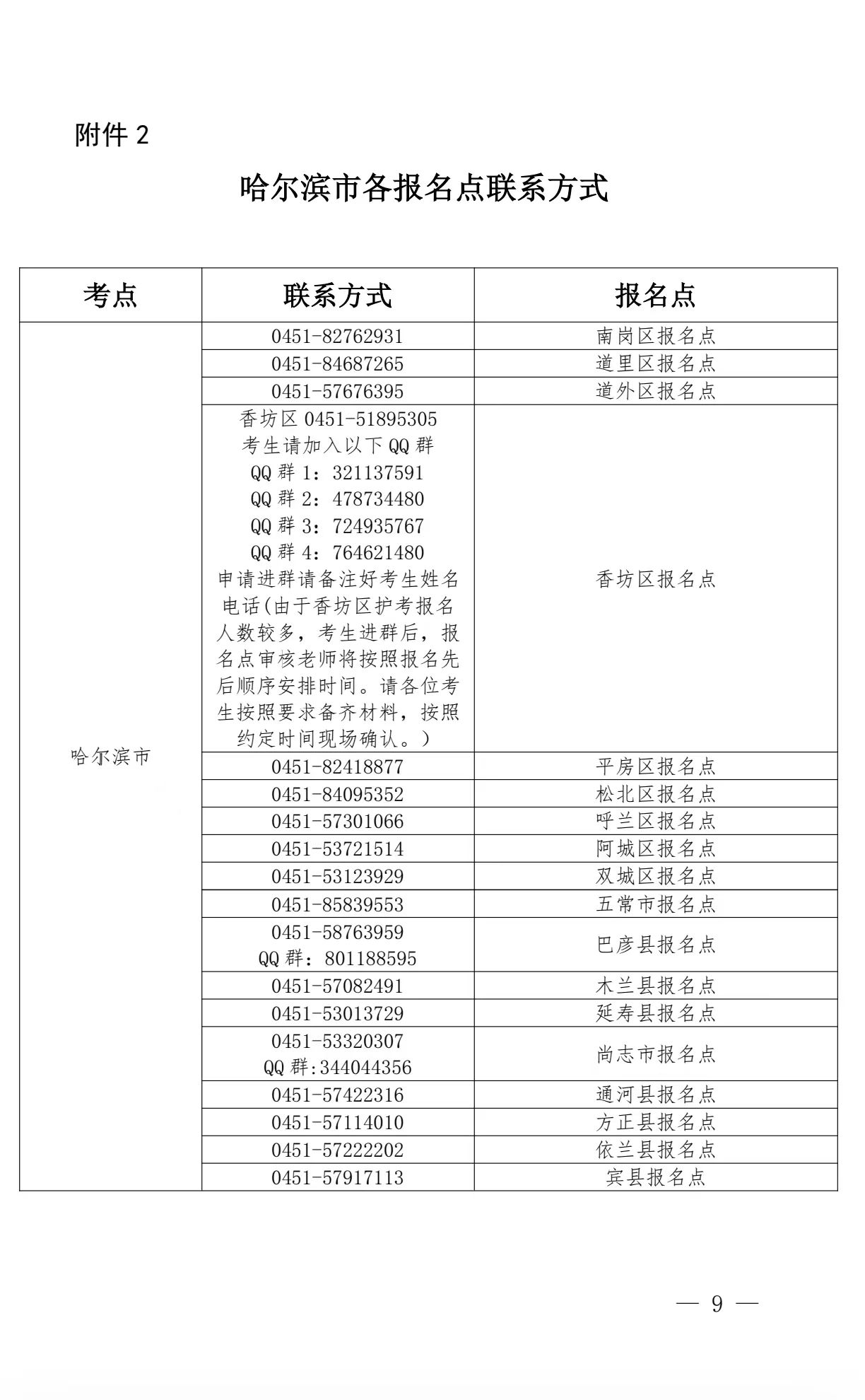 2.哈爾濱市各報(bào)名點(diǎn)聯(lián)系方式