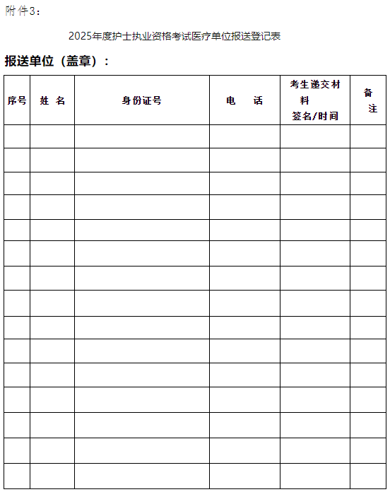 3、2025年度護士執(zhí)業(yè)資格考試醫(yī)療單位報送登記表;