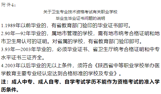 4、關(guān)于衛(wèi)生專業(yè)技術(shù)資格考試有關(guān)職業(yè)學(xué)校畢業(yè)生畢業(yè)證書問題的說明 。