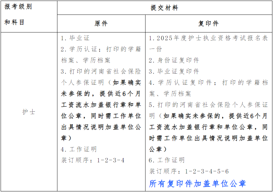 3、考點資格審核:2024年12月 23 日至 29 日。各報名點現(xiàn)場確認審核工作結(jié)束后,填寫《護士執(zhí)業(yè)資格考試報名審核匯總表》(附件 2)于考點通知時間將報名人員有關(guān)材料統(tǒng)一報送南陽市人口發(fā)展與衛(wèi)生健康服務中心??键c資格審核由報名點或單位或?qū)W校集體進行辦理,考生個人無需前往。