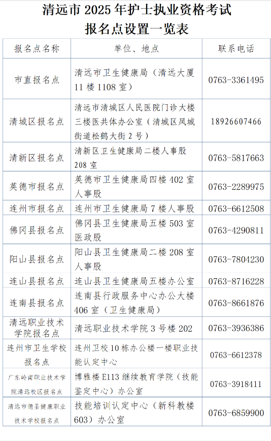 附件2、2025年清遠(yuǎn)市護(hù)士執(zhí)業(yè)資格考試報(bào)名點(diǎn)一覽表