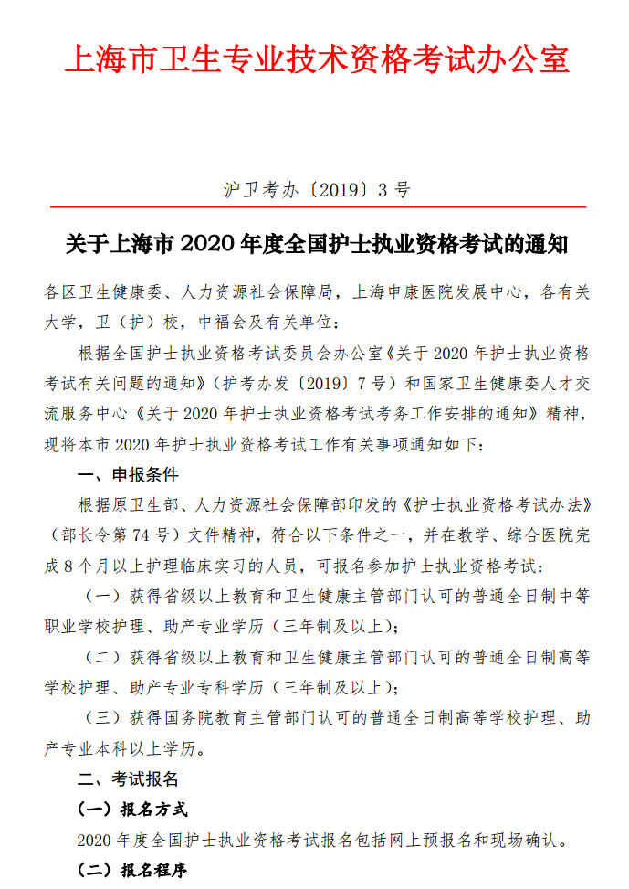 - · 上海市2024年全國護(hù)士執(zhí)業(yè)資格考試通知