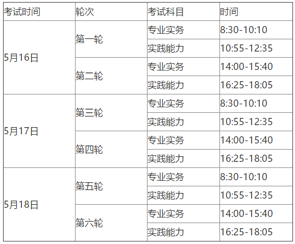(四)考試形式及時間。2020年護士執(zhí)業(yè)資格考試實行人機對話考試,定于2020年5月16-18日舉行,每半天為一個輪次,分為6輪次依次進行,考生將隨機分配至其中一個輪次,參加專業(yè)實務和實踐能力兩個科目的考試,具體安排如下: