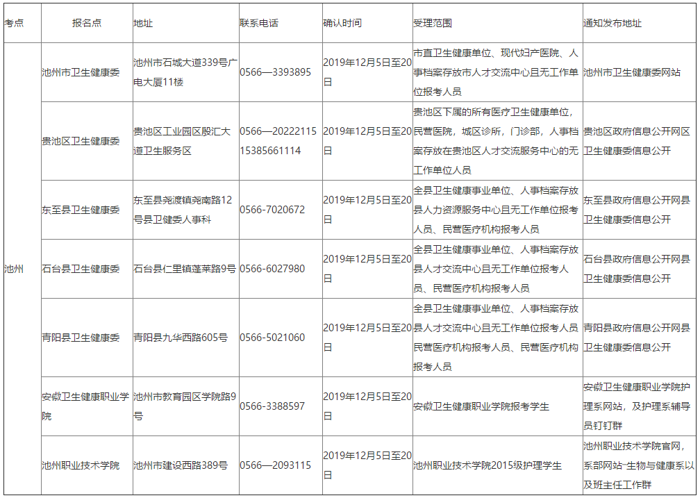 2020年護(hù)士執(zhí)業(yè)資格考試安徽池州考點(diǎn)現(xiàn)場(chǎng)確認(rèn)聯(lián)系方式