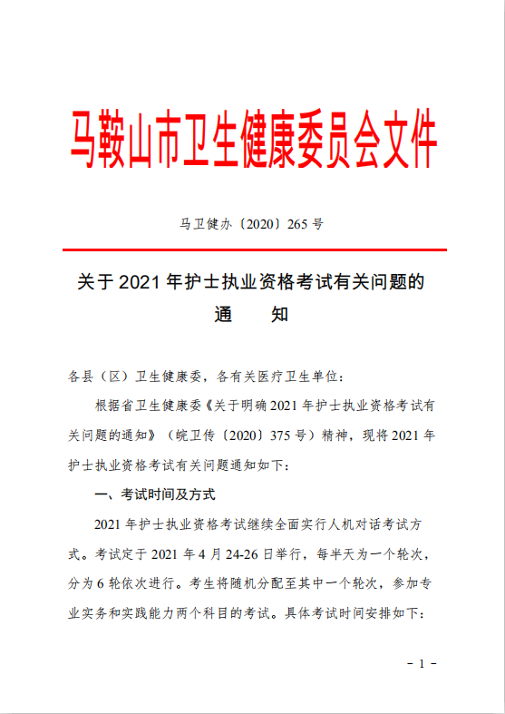 馬鞍山關(guān)于2021年護士執(zhí)業(yè)資格考試有關(guān)問題的通知