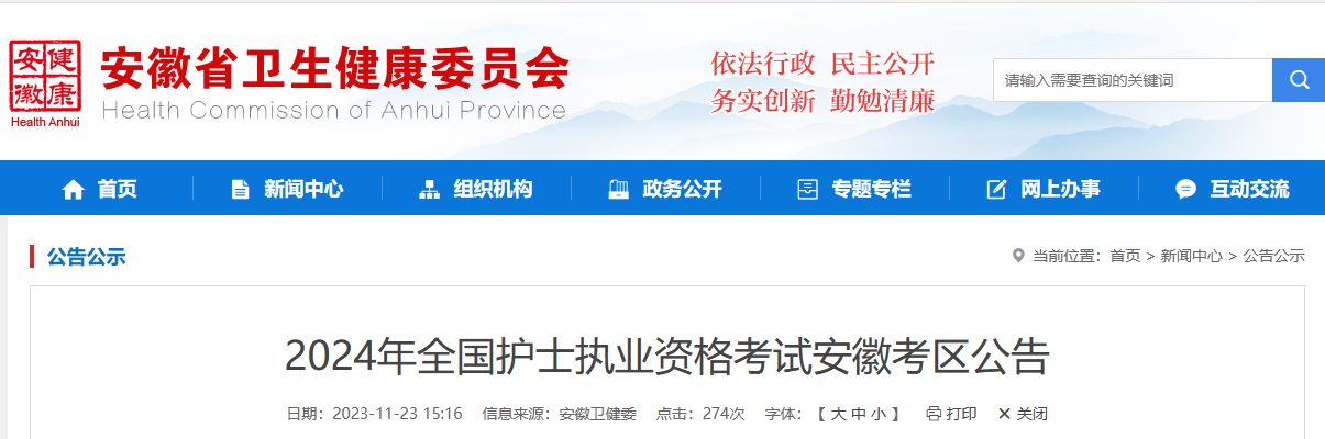 2024年全國護士執(zhí)業(yè)資格考試安徽考區(qū)公告
