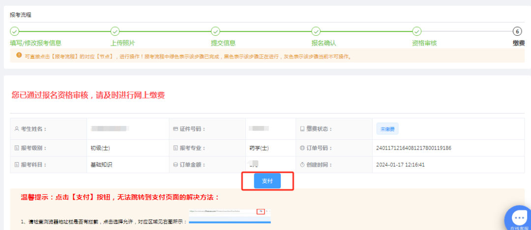 1.考生在報名網(wǎng)站(中國衛(wèi)生人才網(wǎng))點擊報名的考試后,進入報考流程繳費頁面進行支付