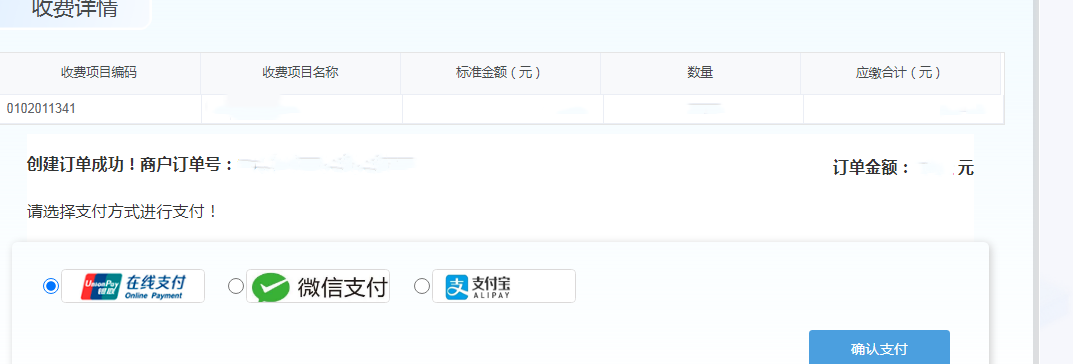 2.跳轉至收費詳情頁面,確認后點擊確認繳費