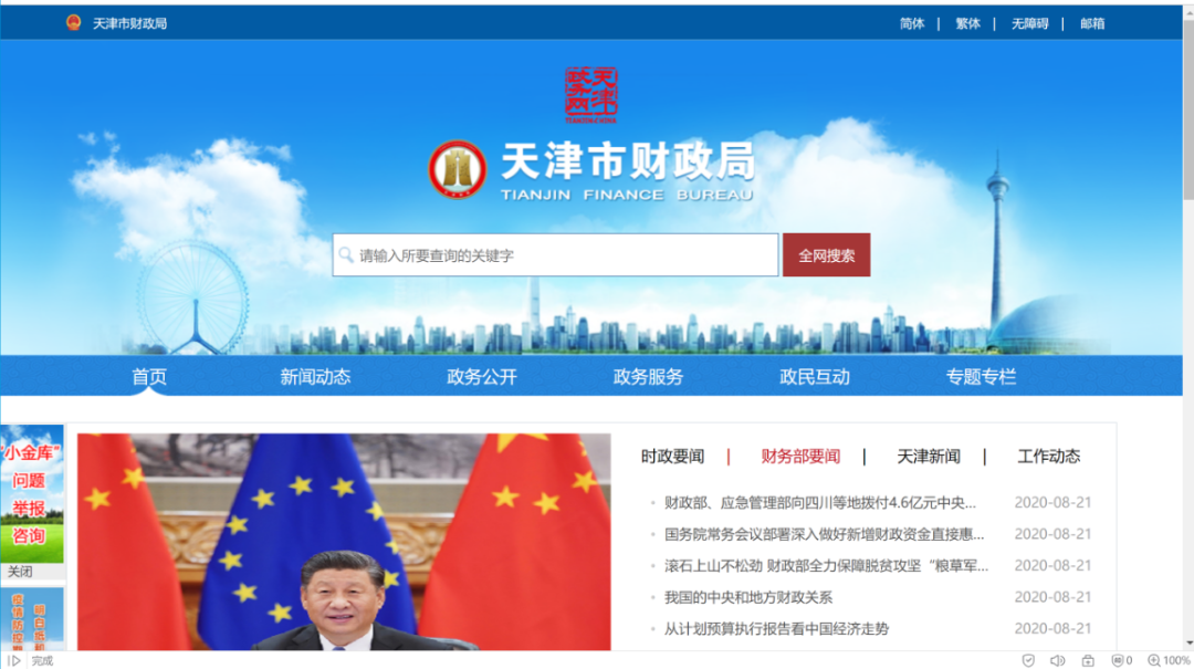 1.登錄天津市財政局官網(wǎng),地址為:cz.tj.gov.cn
