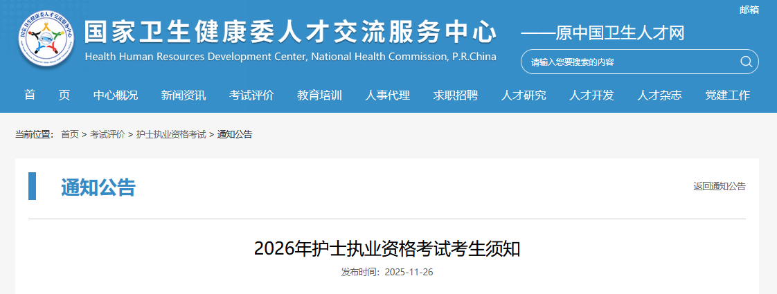 - · 2026年全國護士執(zhí)業(yè)資格考試河北考區(qū)公告