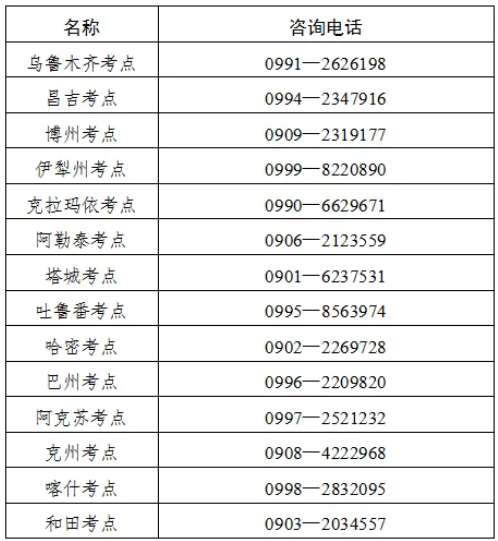 六、新疆考區(qū)護士執(zhí)業(yè)資格考試各考點咨詢電話