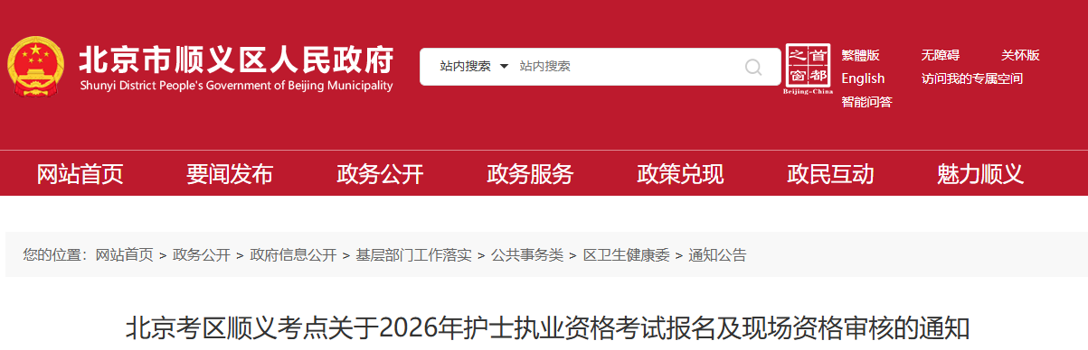 北京考區(qū)順義考點(diǎn)2026年護(hù)士執(zhí)業(yè)資格考試報名及現(xiàn)場資格審核的通知