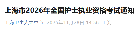 - · 上海市2026年全國護士執(zhí)業(yè)資格考試通知